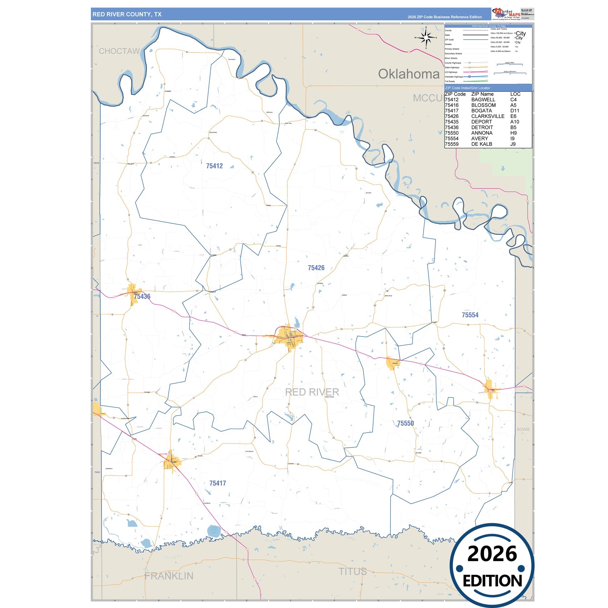 The Business Reference Style Red River County, TX is a detailed map that includes all towns, cities, major roadways, and highways. Available in multiple wall map sizes, perfect for home, school, office, or business display.
