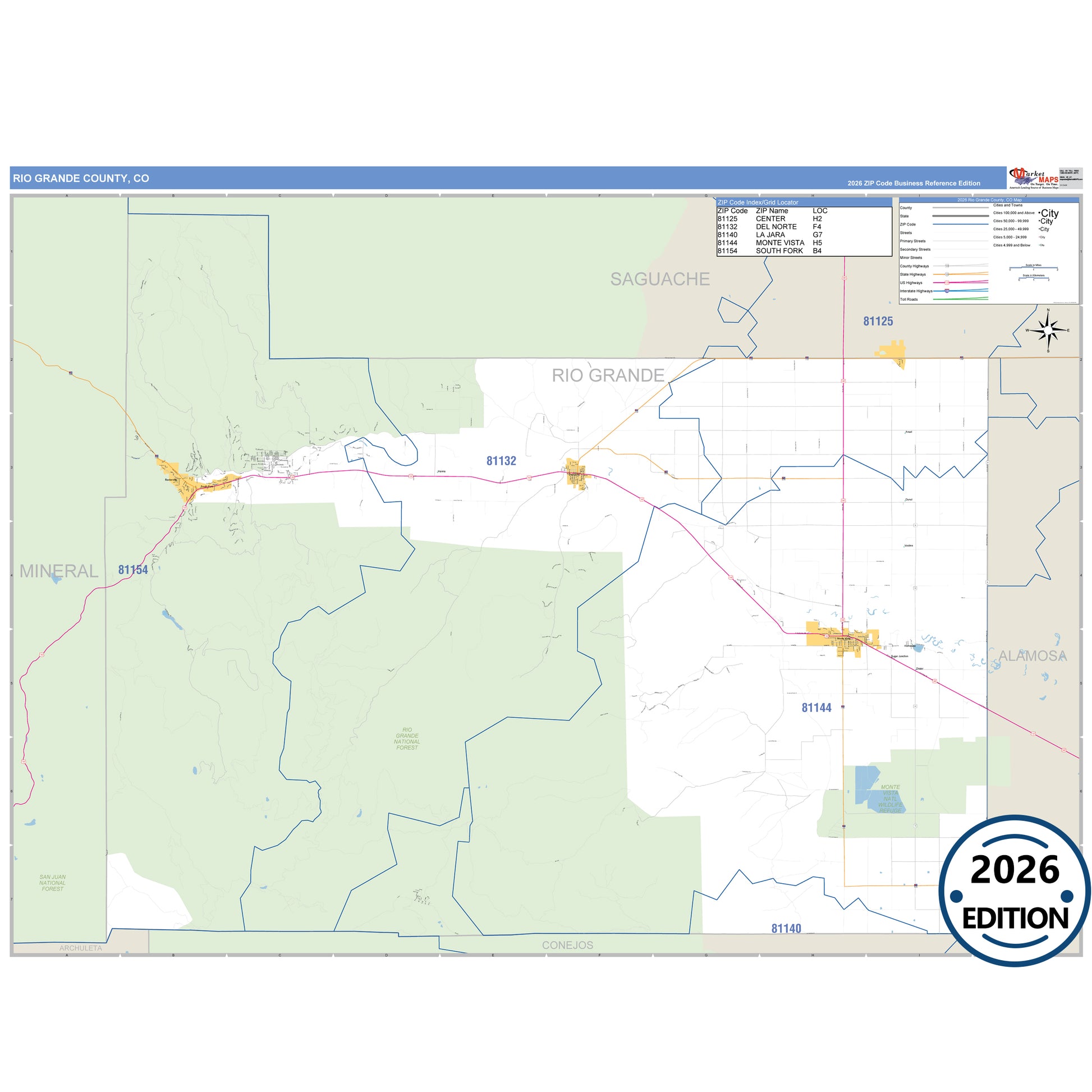 The Business Reference Style Rio Grande County, CO is a detailed map that includes all towns, cities, major roadways, and highways. Available in multiple wall map sizes, perfect for home, school, office, or business display.