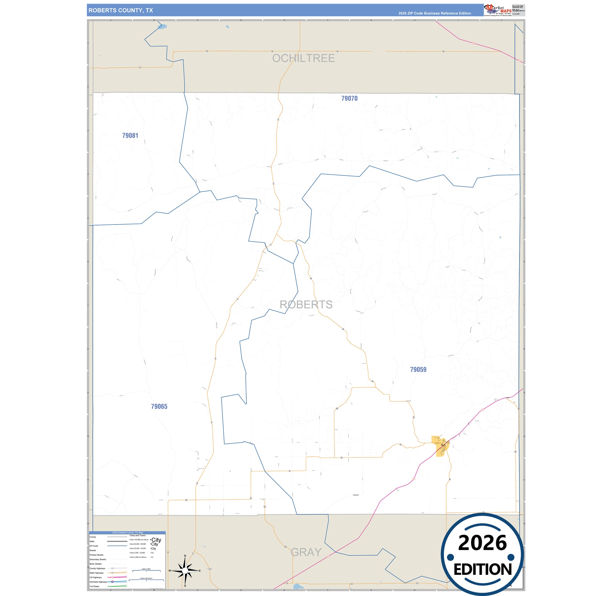 The Business Reference Style Roberts County, TX is a detailed map that includes all towns, cities, major roadways, and highways. Available in multiple wall map sizes, perfect for home, school, office, or business display.