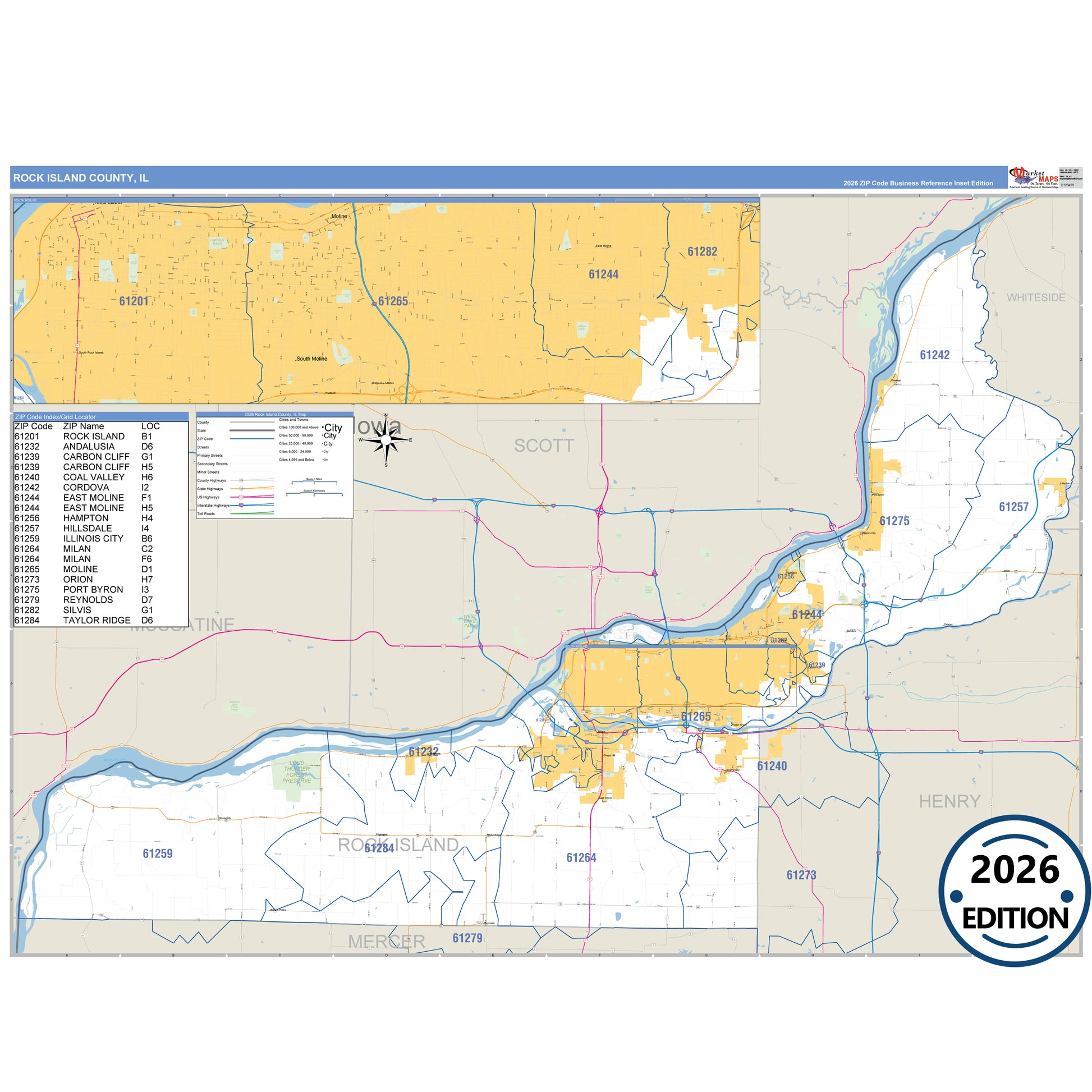 The Business Reference Style Rock Island County, IL is a detailed map that includes all towns, cities, major roadways, and highways. Available in multiple wall map sizes, perfect for home, school, office, or business display.
