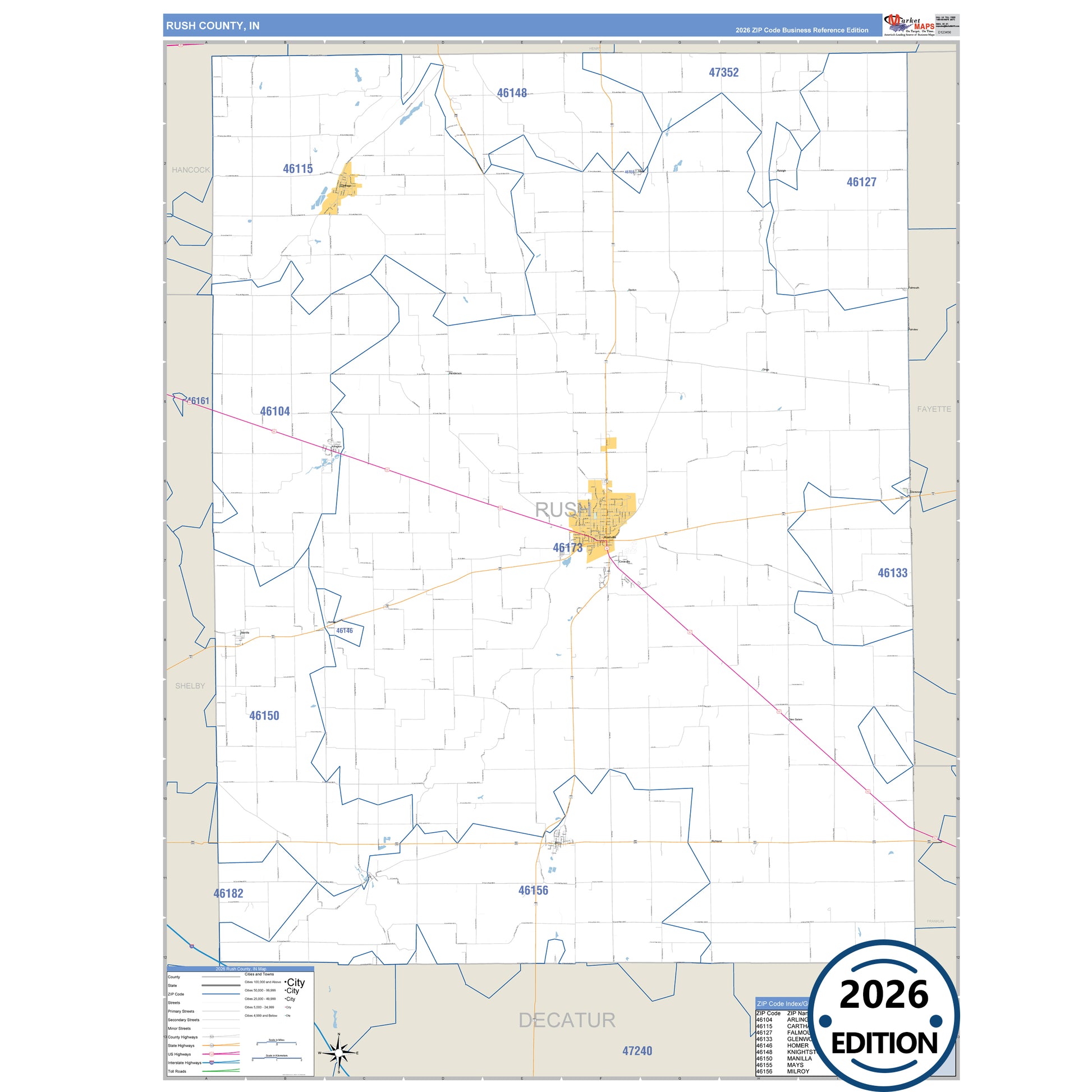 The Business Reference Style Rush County, IN is a detailed map that includes all towns, cities, major roadways, and highways. Available in multiple wall map sizes, perfect for home, school, office, or business display.
