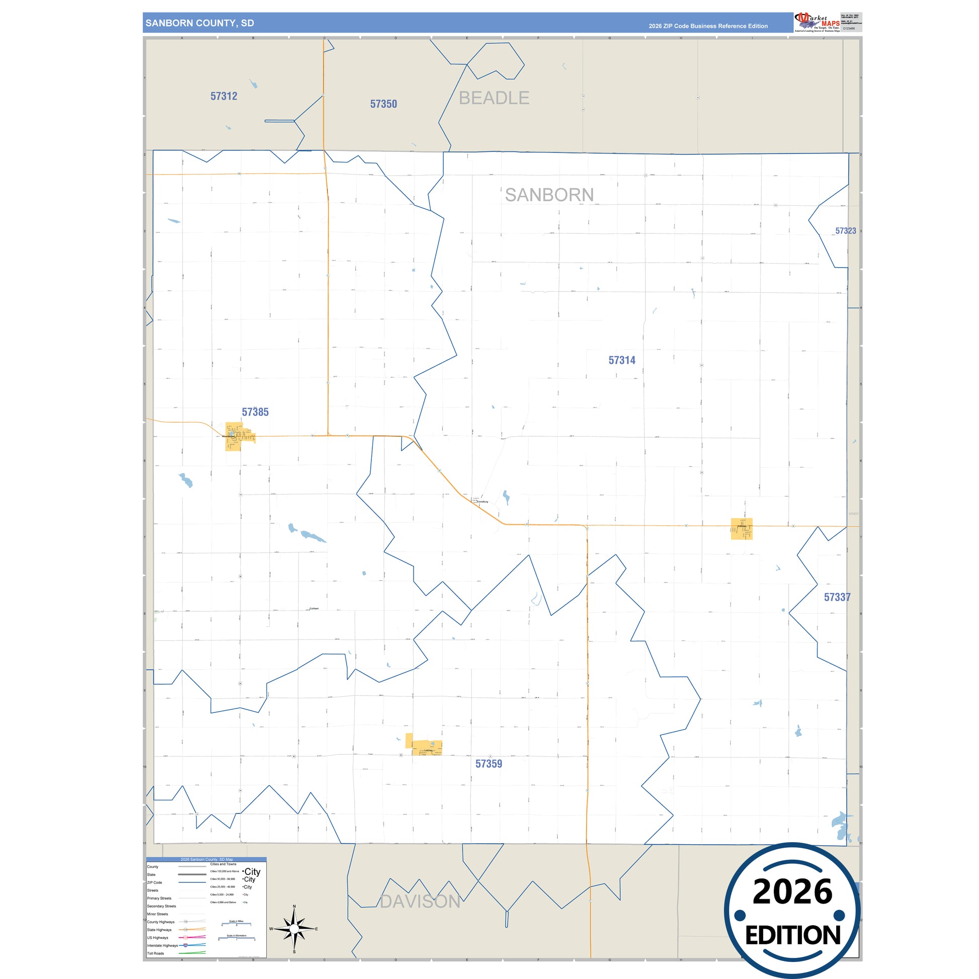The Business Reference Style Sanborn County, SD is a detailed map that includes all towns, cities, major roadways, and highways. Available in multiple wall map sizes, perfect for home, school, office, or business display.