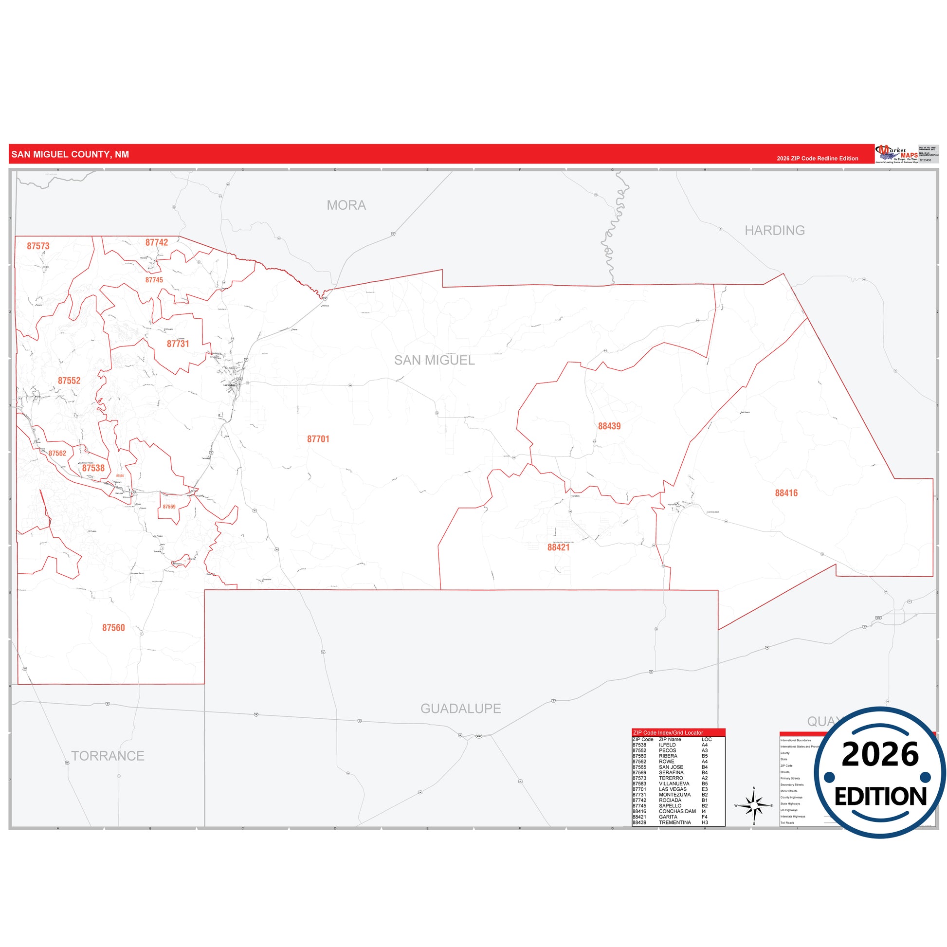 - 5 Digit ZIP Codes with grid locator.