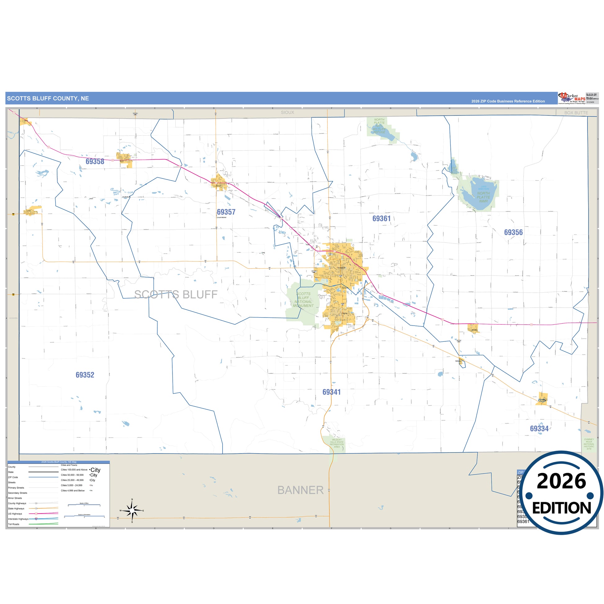The Business Reference Style Scotts Bluff County, NE is a detailed map that includes all towns, cities, major roadways, and highways. Available in multiple wall map sizes, perfect for home, school, office, or business display.