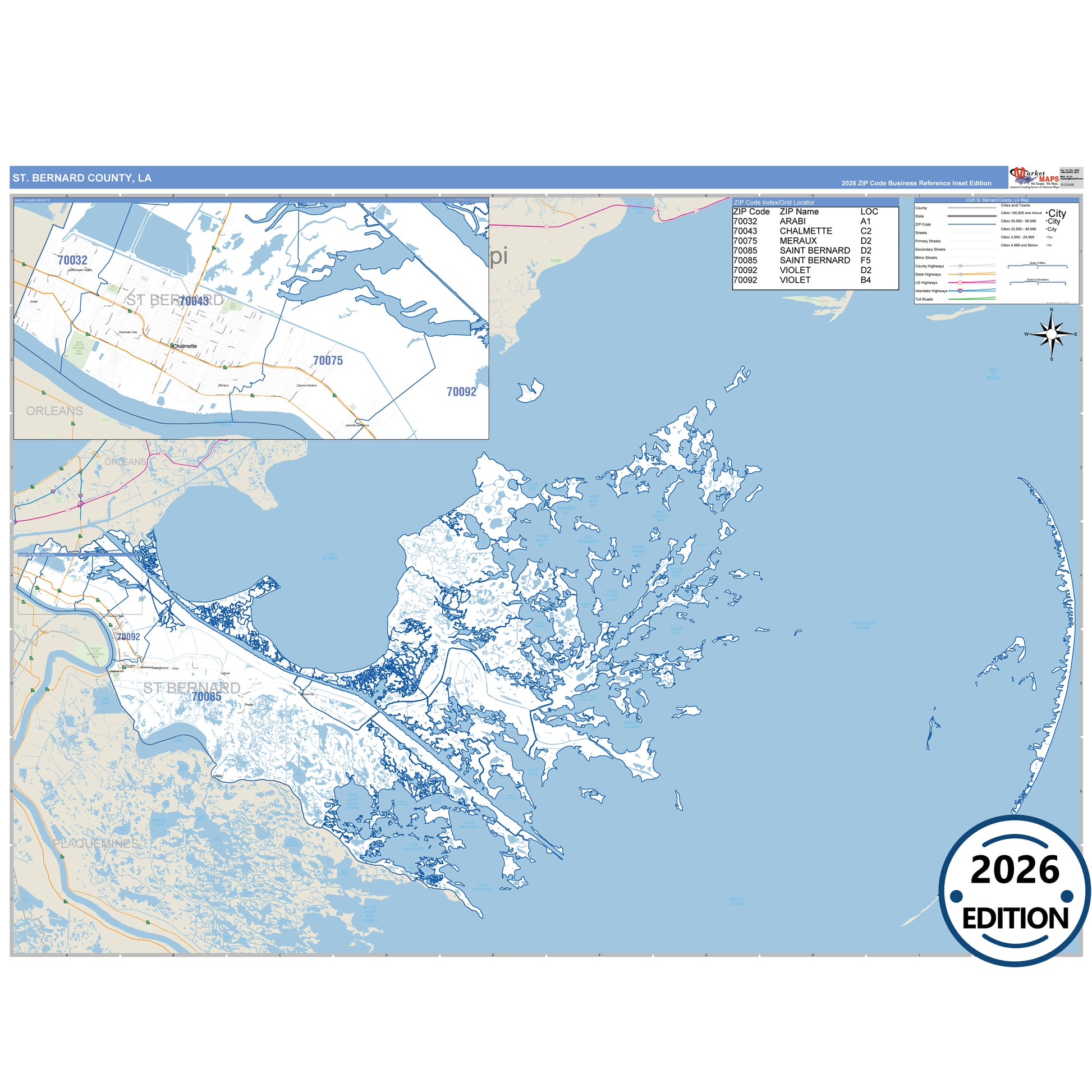 The Business Reference Style St. Bernard County, LA is a detailed map that includes all towns, cities, major roadways, and highways. Available in multiple wall map sizes, perfect for home, school, office, or business display.