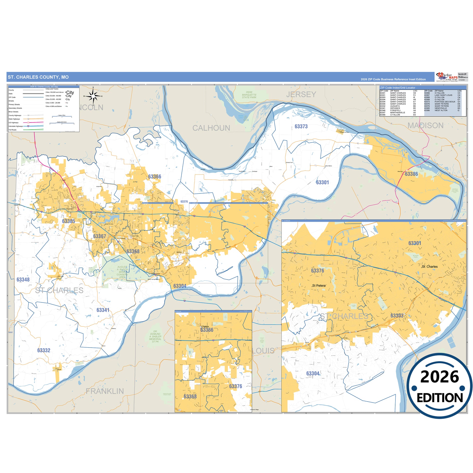 The Business Reference Style St. Charles County, MO is a detailed map that includes all towns, cities, major roadways, and highways. Available in multiple wall map sizes, perfect for home, school, office, or business display.