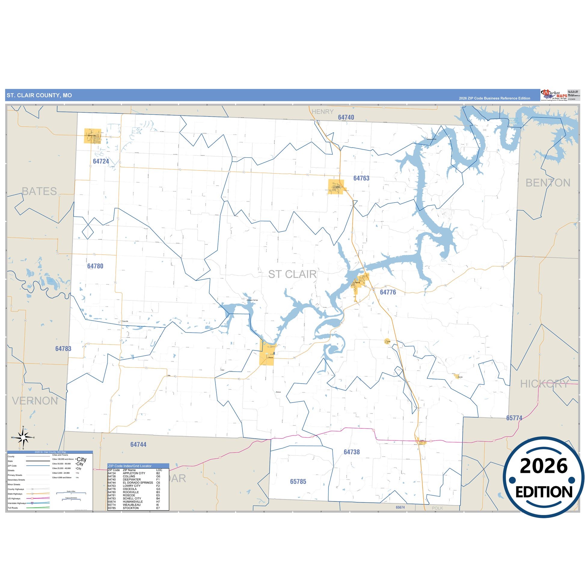 The Business Reference Style St. Clair County, MO is a detailed map that includes all towns, cities, major roadways, and highways. Available in multiple wall map sizes, perfect for home, school, office, or business display.