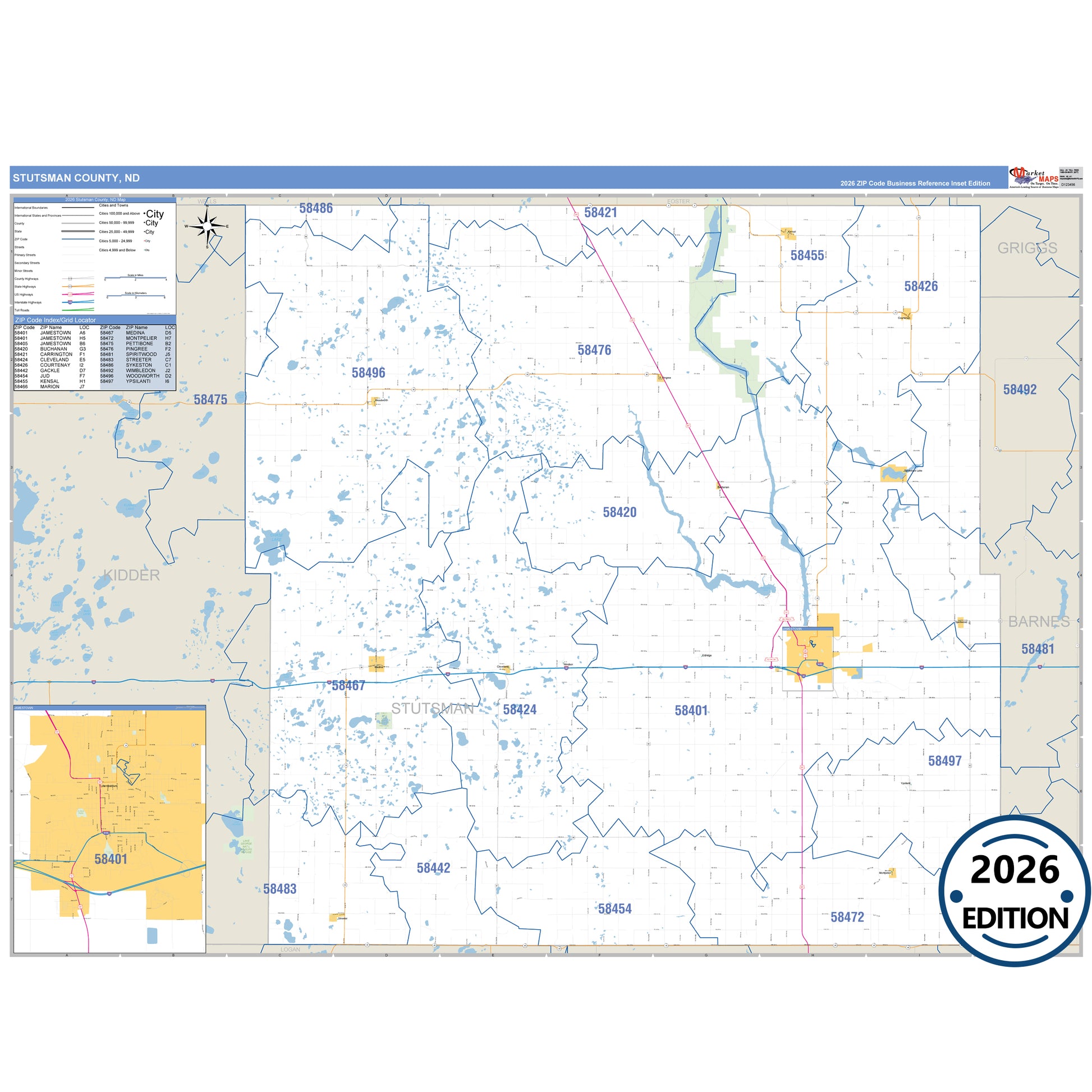 The Business Reference Style Stutsman County, ND is a detailed map that includes all towns, cities, major roadways, and highways. Available in multiple wall map sizes, perfect for home, school, office, or business display.