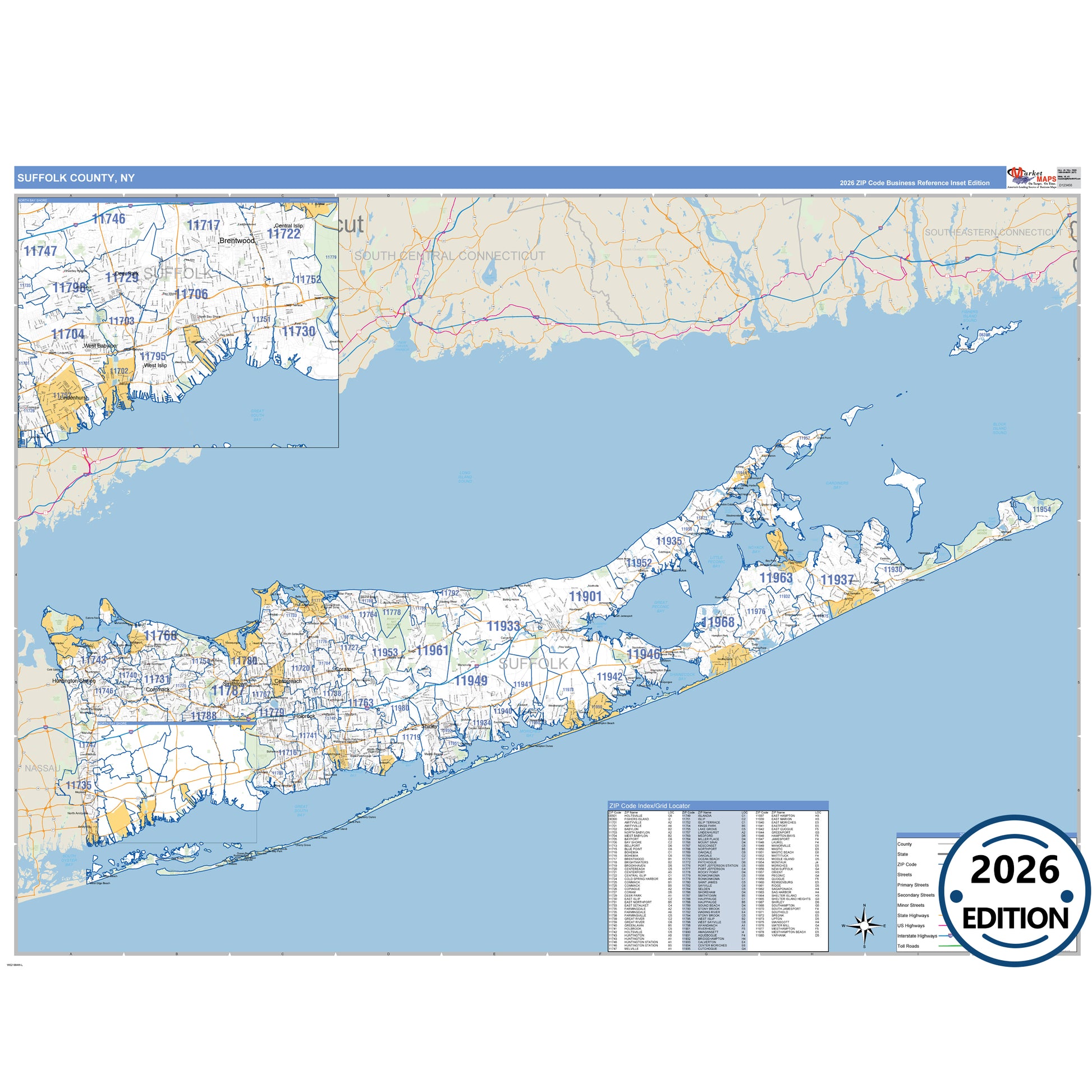 The Business Reference Style Suffolk County, NY is a detailed map that includes all towns, cities, major roadways, and highways. Available in multiple wall map sizes, perfect for home, school, office, or business display.