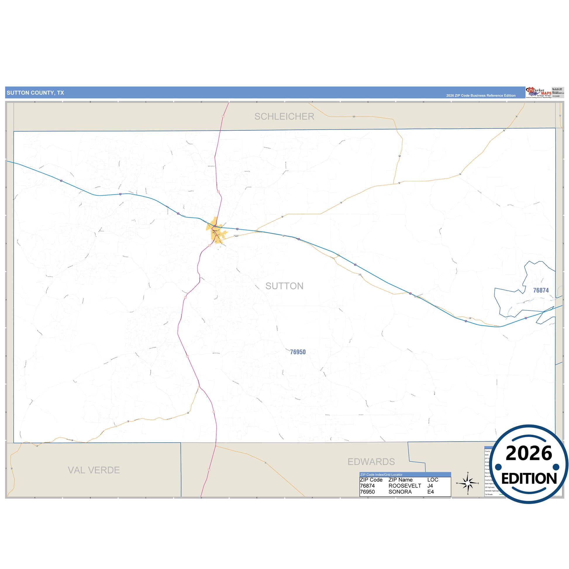 The Business Reference Style Sutton County, TX is a detailed map that includes all towns, cities, major roadways, and highways. Available in multiple wall map sizes, perfect for home, school, office, or business display.