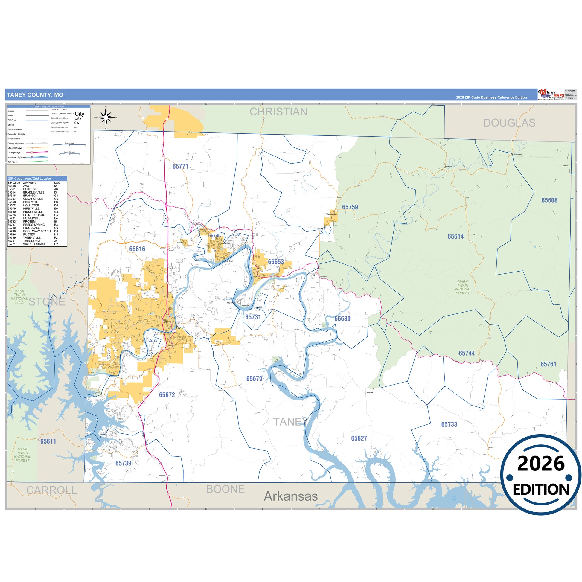 The Business Reference Style Taney County, MO is a detailed map that includes all towns, cities, major roadways, and highways. Available in multiple wall map sizes, perfect for home, school, office, or business display.