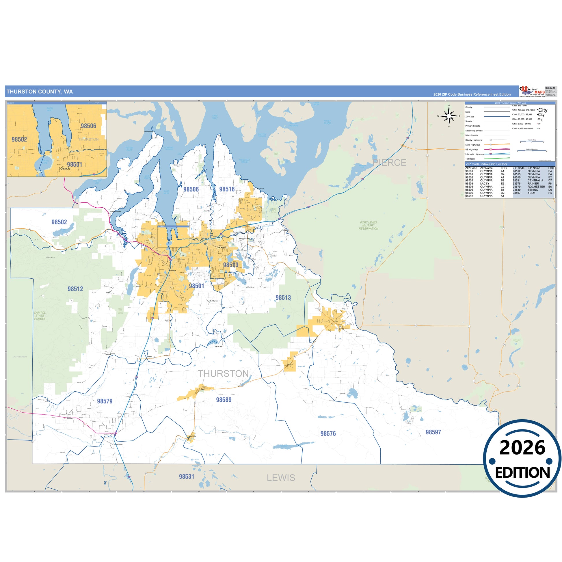 The Business Reference Style Thurston County, WA is a detailed map that includes all towns, cities, major roadways, and highways. Available in multiple wall map sizes, perfect for home, school, office, or business display.