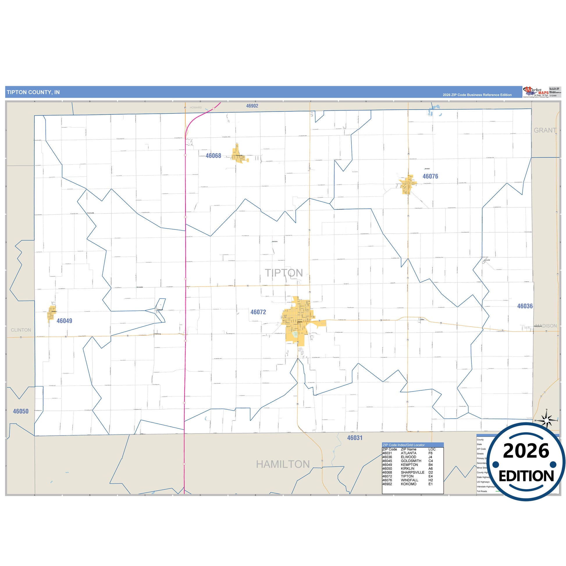The Business Reference Style Tipton County, IN is a detailed map that includes all towns, cities, major roadways, and highways. Available in multiple wall map sizes, perfect for home, school, office, or business display.