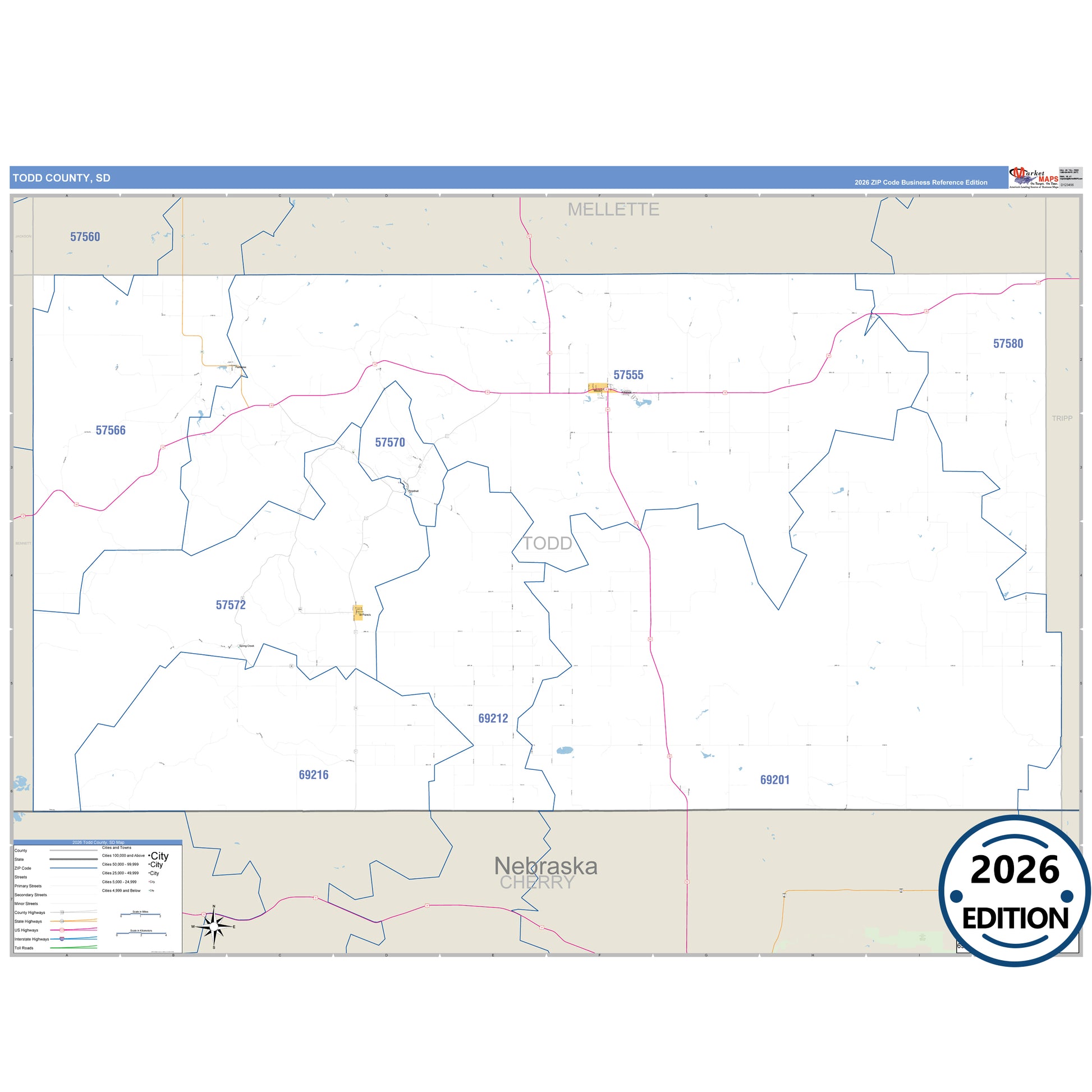 The Business Reference Style Todd County, SD is a detailed map that includes all towns, cities, major roadways, and highways. Available in multiple wall map sizes, perfect for home, school, office, or business display.