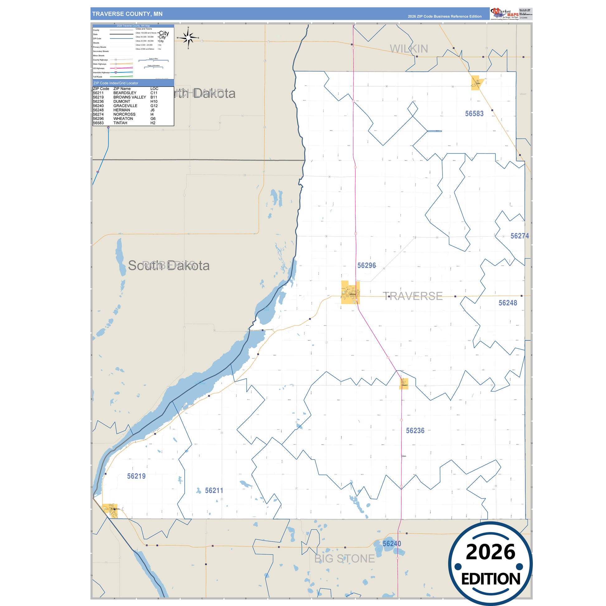 The Business Reference Style Traverse County, MN is a detailed map that includes all towns, cities, major roadways, and highways. Available in multiple wall map sizes, perfect for home, school, office, or business display.