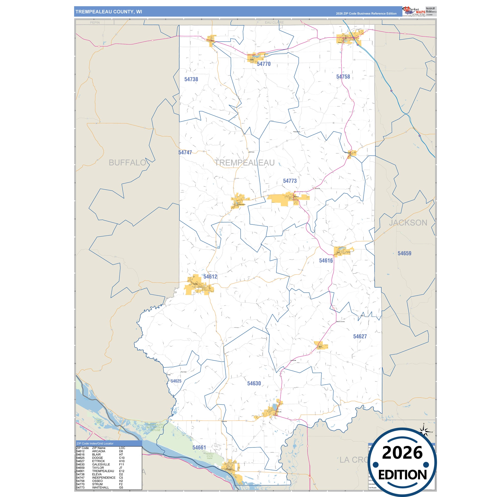 The Business Reference Style Trempealeau County, WI is a detailed map that includes all towns, cities, major roadways, and highways. Available in multiple wall map sizes, perfect for home, school, office, or business display.