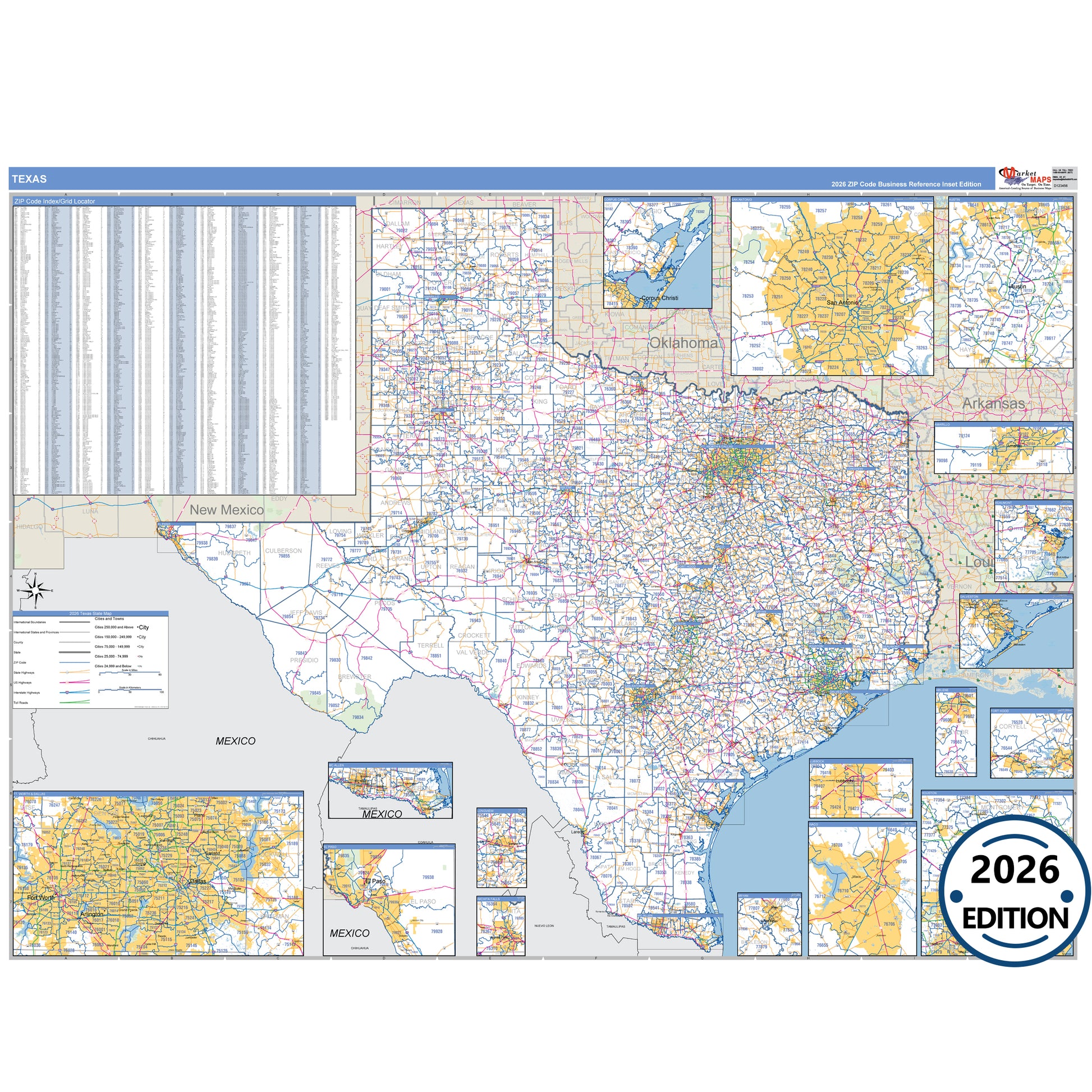 The Lone Star State, Texas, in Business Reference Style is a detailed, professional wall map designed for presentations, office displays, and classroom use. Featuring traditional color schemes and clear map details, this Texas map showcases all major highways with precise highway markings and shaded populated areas for easy reference. Ideal for business planning, route mapping, and geographic visualization, the Business Reference Style Texas Map provides a clean, visually appealing layout that is perfect for offices, schools, and meeting rooms.