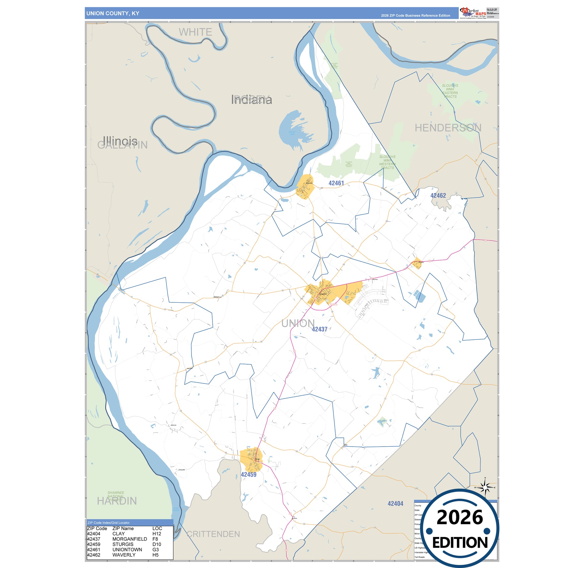 The Business Reference Style Union County, KY is a detailed map that includes all towns, cities, major roadways, and highways. Available in multiple wall map sizes, perfect for home, school, office, or business display.