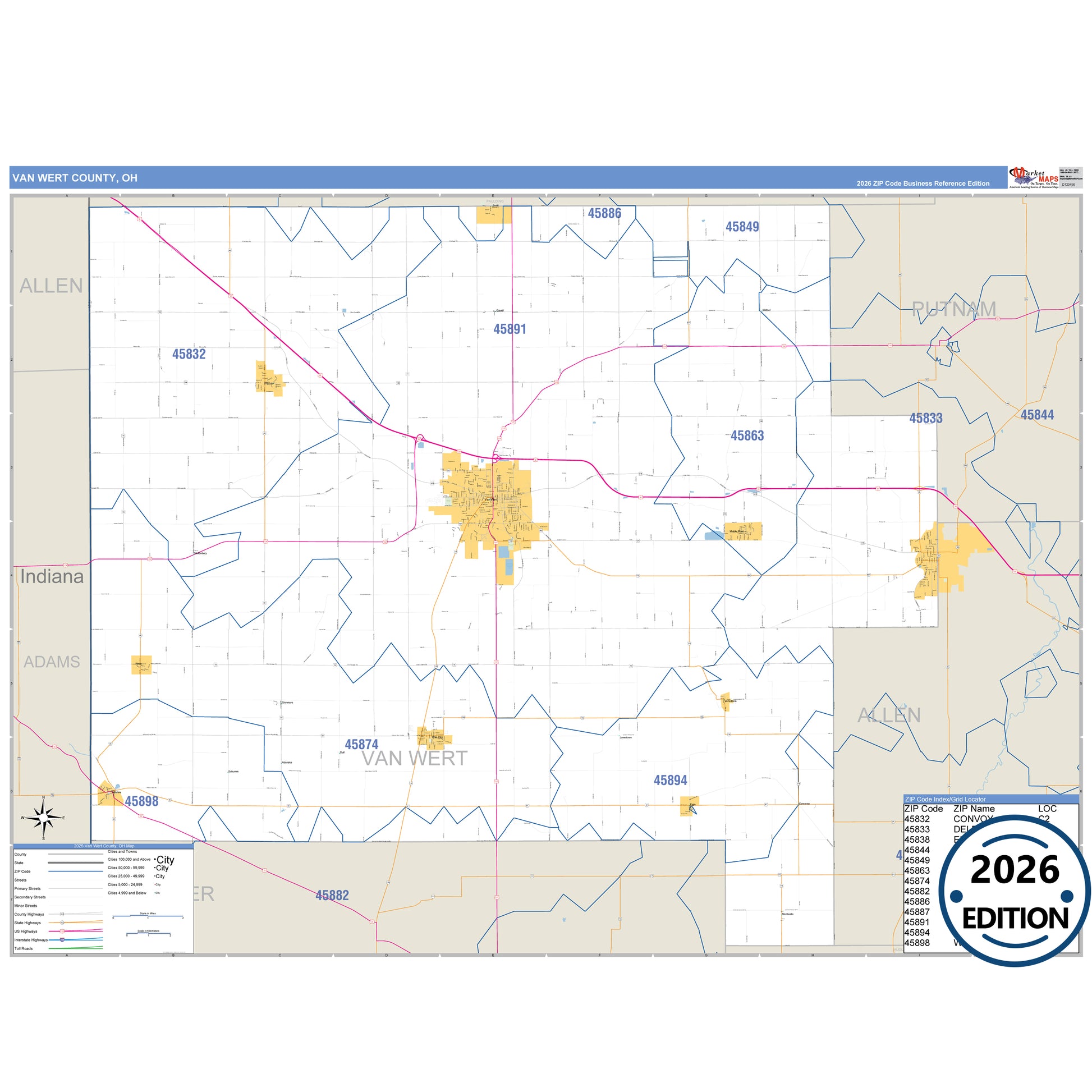 The Business Reference Style Van Wert County, OH is a detailed map that includes all towns, cities, major roadways, and highways. Available in multiple wall map sizes, perfect for home, school, office, or business display.