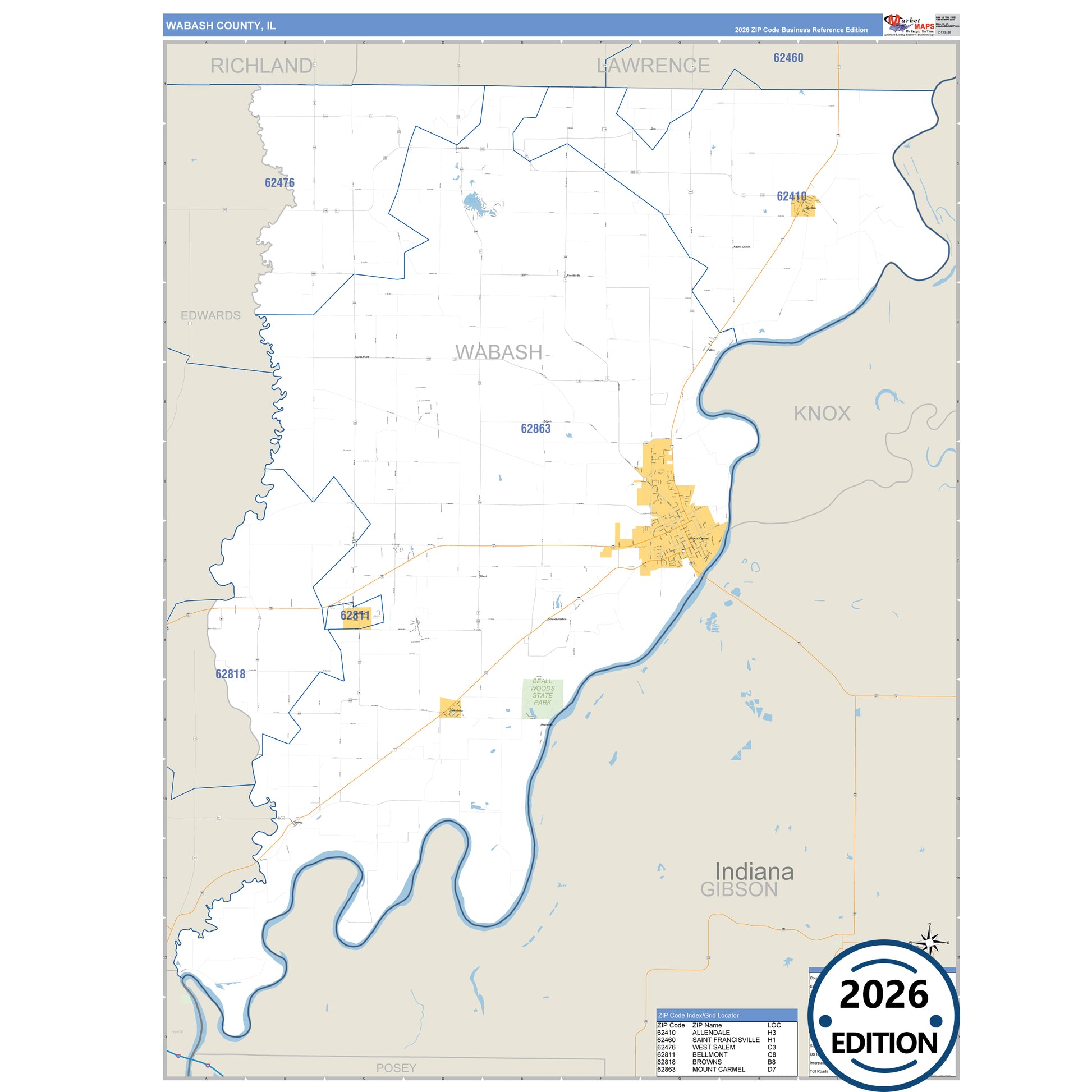The Business Reference Style Wabash County, IL is a detailed map that includes all towns, cities, major roadways, and highways. Available in multiple wall map sizes, perfect for home, school, office, or business display.