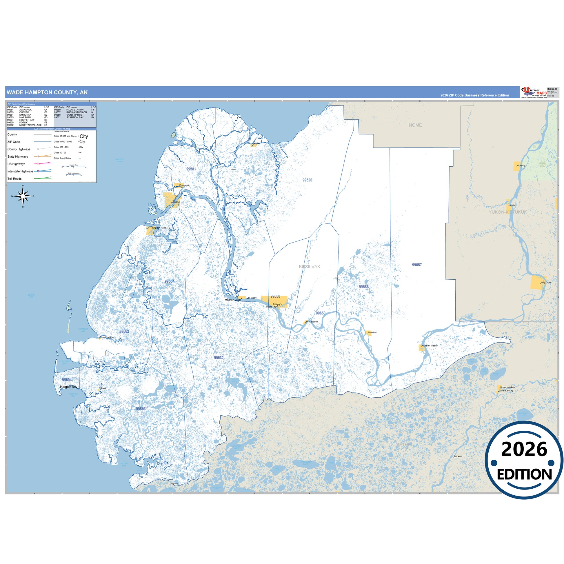 The Business Reference Style Wade Hampton County, AK is a detailed map that includes all towns, cities, major roadways, and highways. Available in multiple wall map sizes, perfect for home, school, office, or business display.