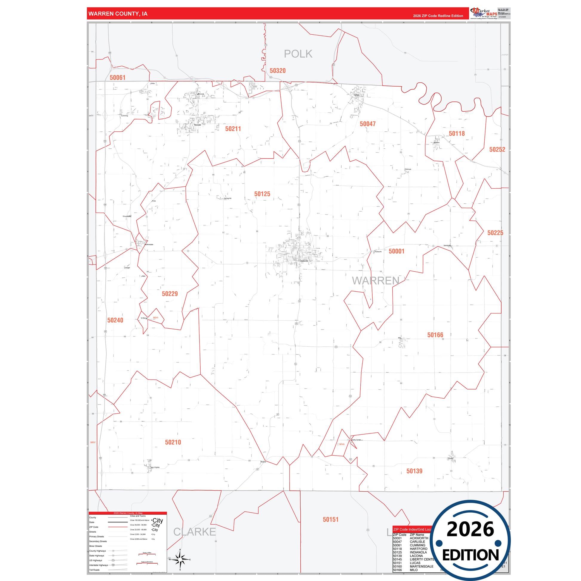 The RedLine Style map of Washington County, IA shows ZIP code areas overlaid on a detailed road network of Washington County, Iowa. Ideal for drawing locations, territories, and other applications. Base map features include all major streets and highways labeled, cities and towns, county and state boundaries, neighborhood names, railroads, and a clean white background suitable for marking and planning.