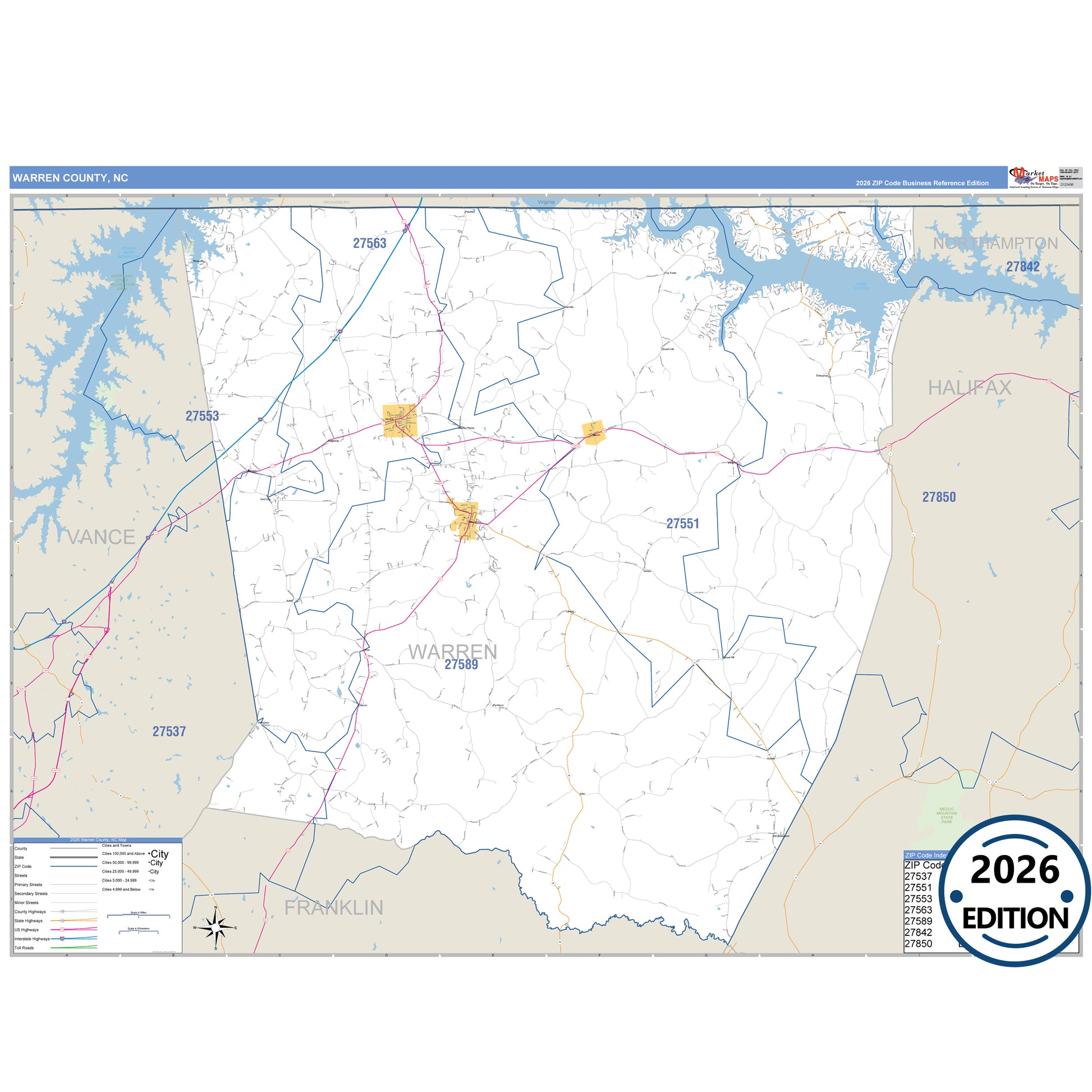 The Business Reference Style Warren County, NC is a detailed map that includes all towns, cities, major roadways, and highways. Available in multiple wall map sizes, perfect for home, school, office, or business display.