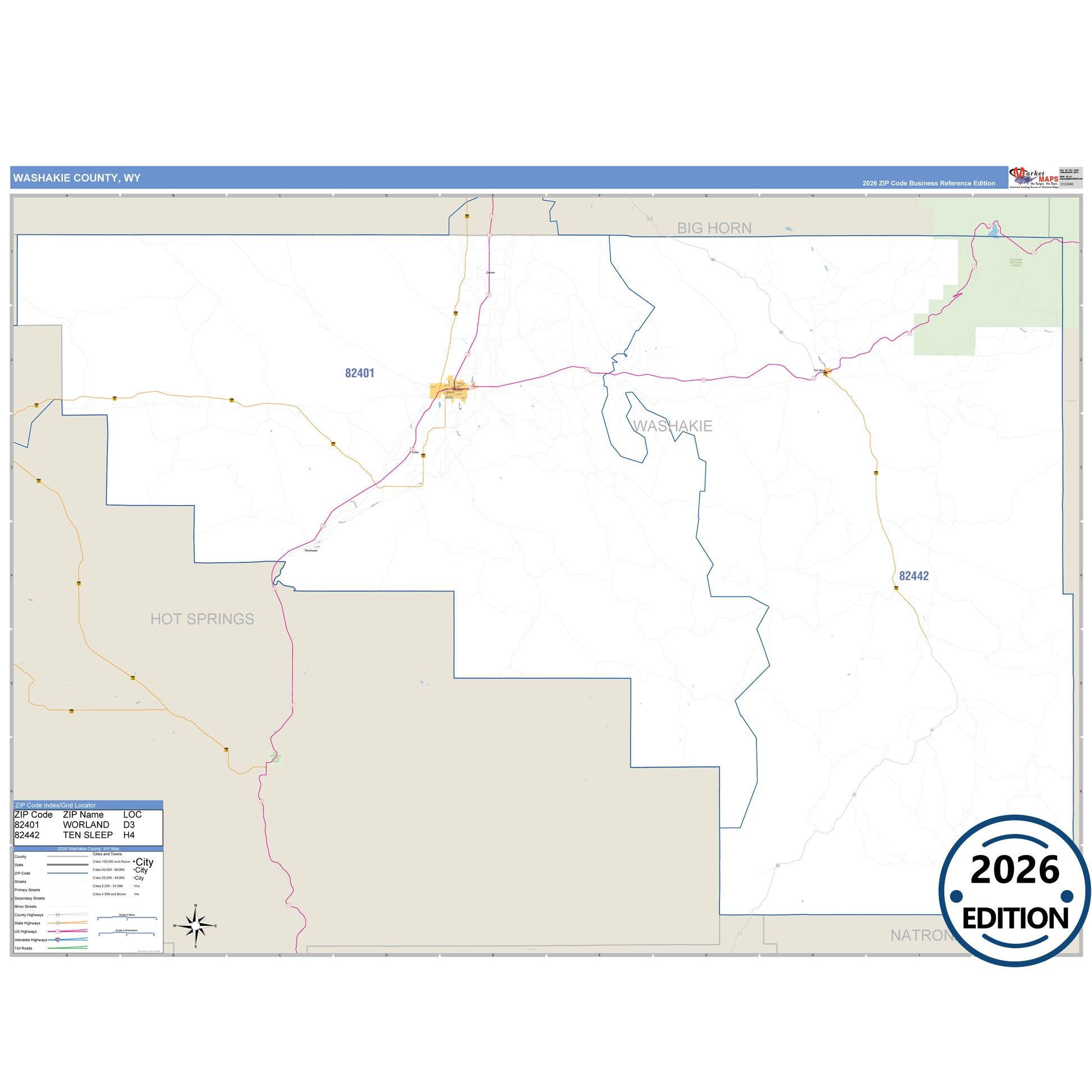 The Business Reference Style Washakie County, WY is a detailed map that includes all towns, cities, major roadways, and highways. Available in multiple wall map sizes, perfect for home, school, office, or business display.