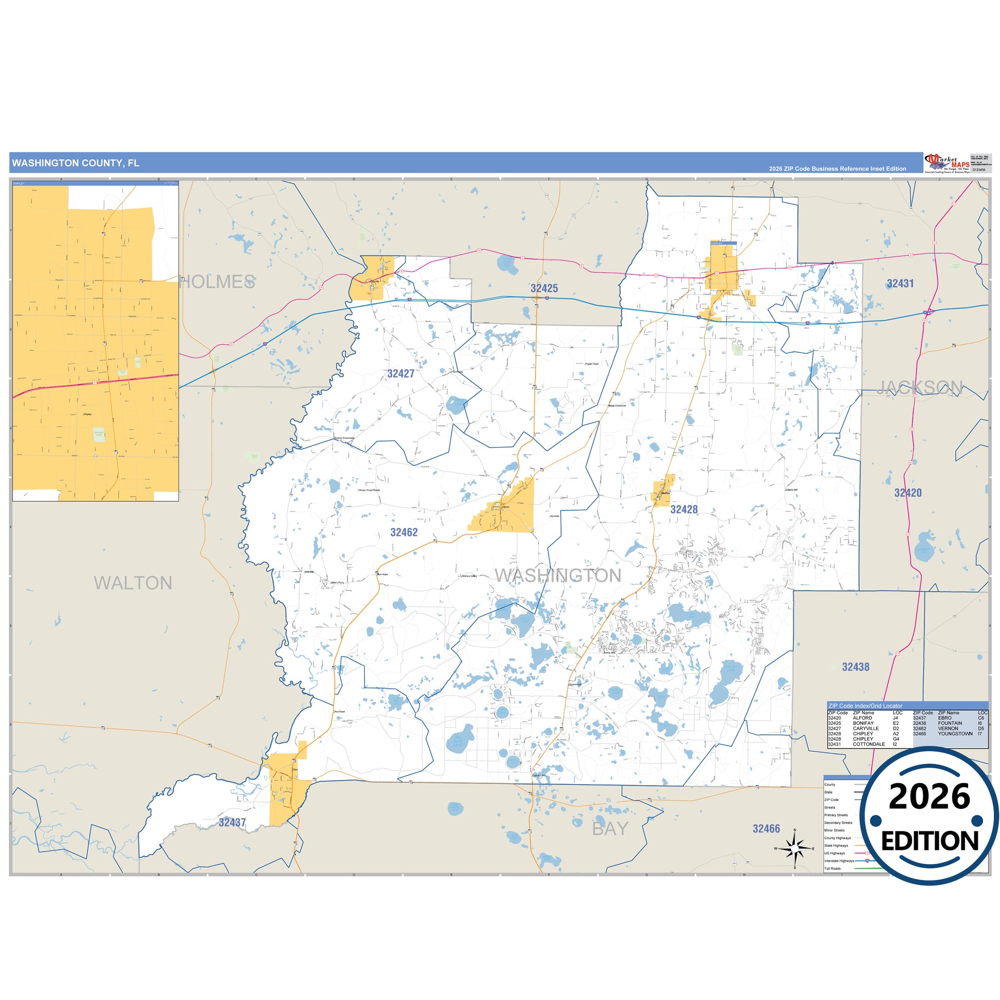 The Business Reference Style Washington County, FL is a detailed map that includes all towns, cities, major roadways, and highways. Available in multiple wall map sizes, perfect for home, school, office, or business display.