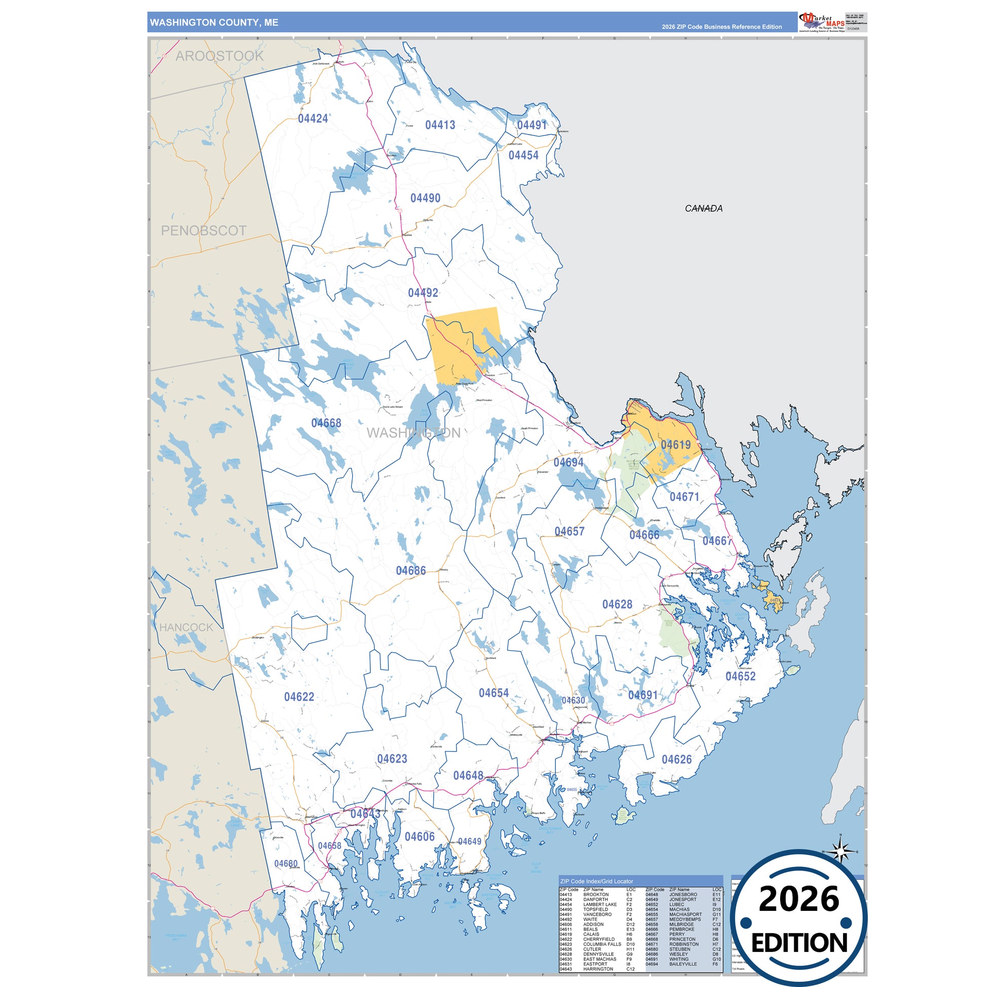 The Business Reference Style Washington County, ME is a detailed map that includes all towns, cities, major roadways, and highways. Available in multiple wall map sizes, perfect for home, school, office, or business display.