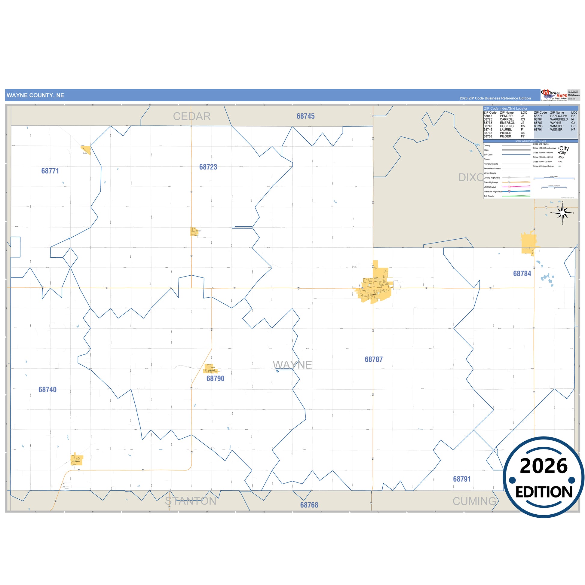 The Business Reference Style Wayne County, NE is a detailed map that includes all towns, cities, major roadways, and highways. Available in multiple wall map sizes, perfect for home, school, office, or business display.
