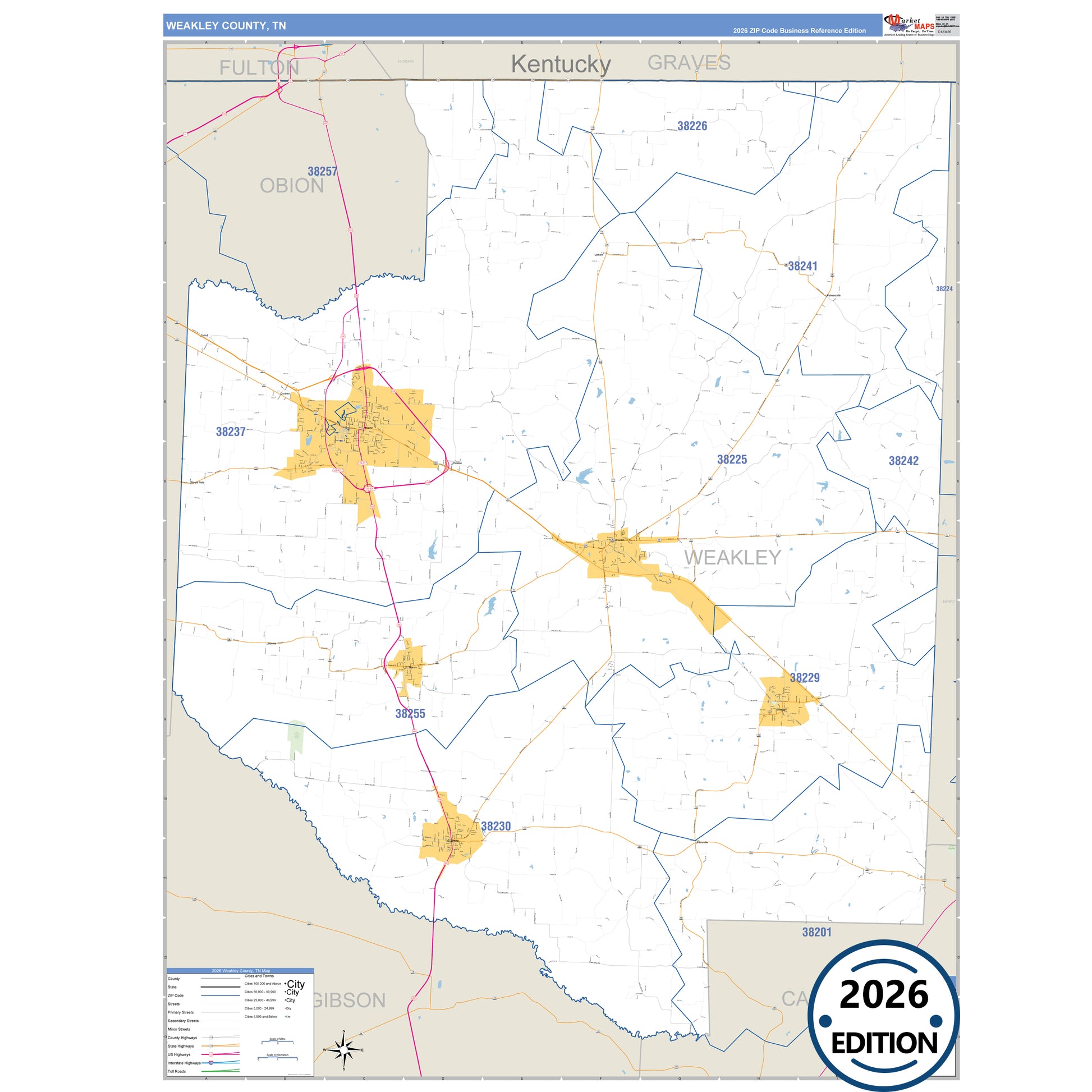 The Business Reference Style Weakley County, TN is a detailed map that includes all towns, cities, major roadways, and highways. Available in multiple wall map sizes, perfect for home, school, office, or business display.