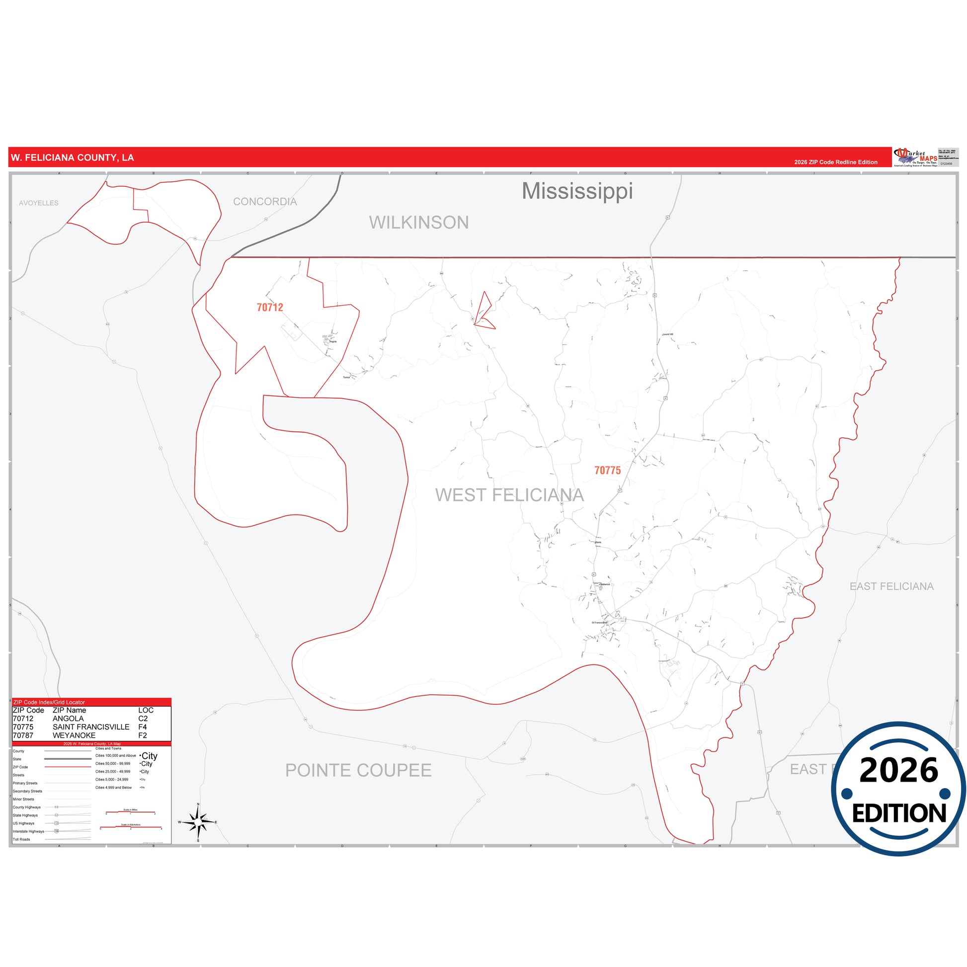 The RedLine Style map of Webster County, LA shows ZIP code areas overlaid on a detailed road network of Webster County, Louisiana. Ideal for drawing locations, territories, and other applications. Base map features include all major streets and highways labeled, cities and towns, county and state boundaries, neighborhood names, railroads, and a clean white background suitable for marking and planning.