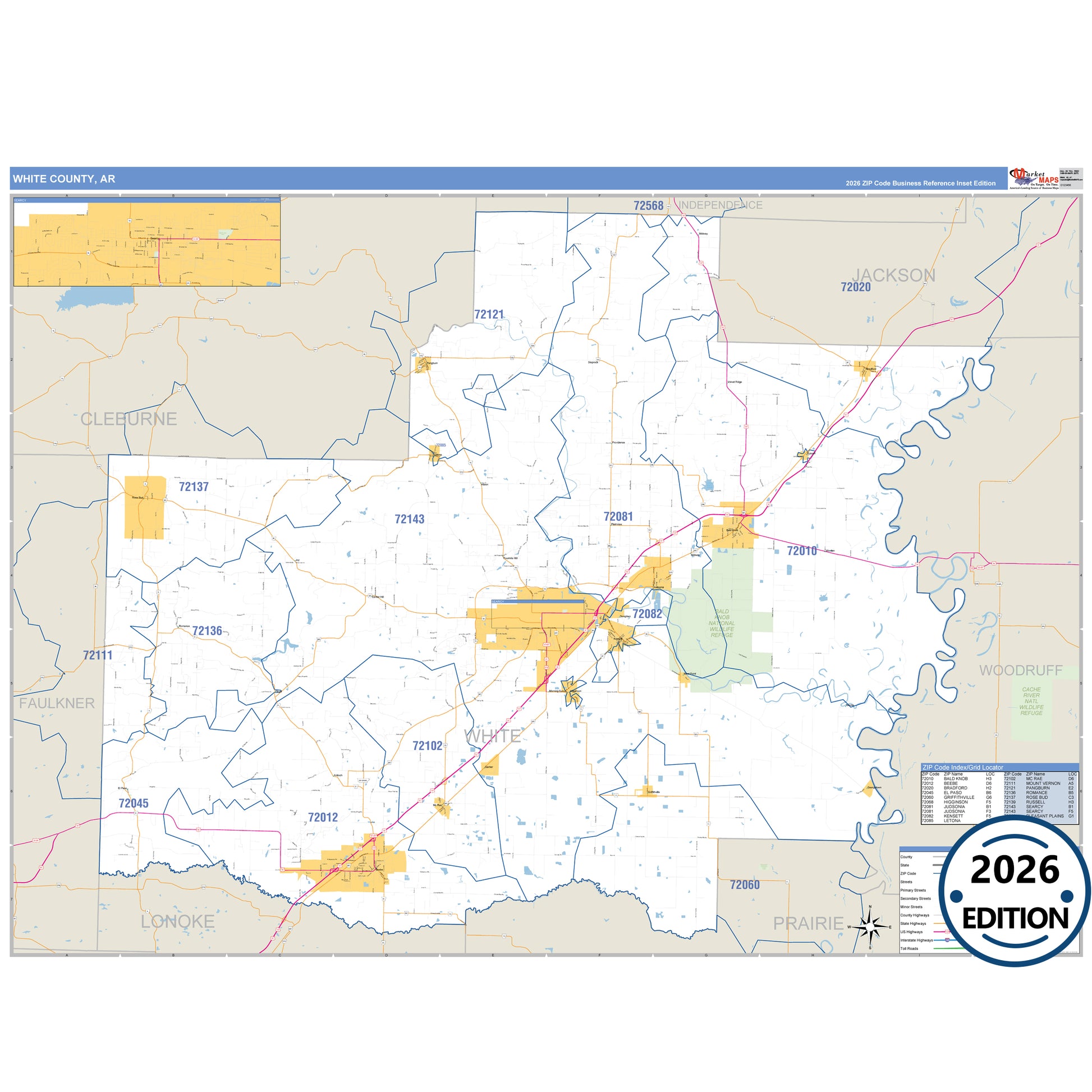 The Business Reference Style White County, AR is a detailed map that includes all towns, cities, major roadways, and highways. Available in multiple wall map sizes, perfect for home, school, office, or business display.