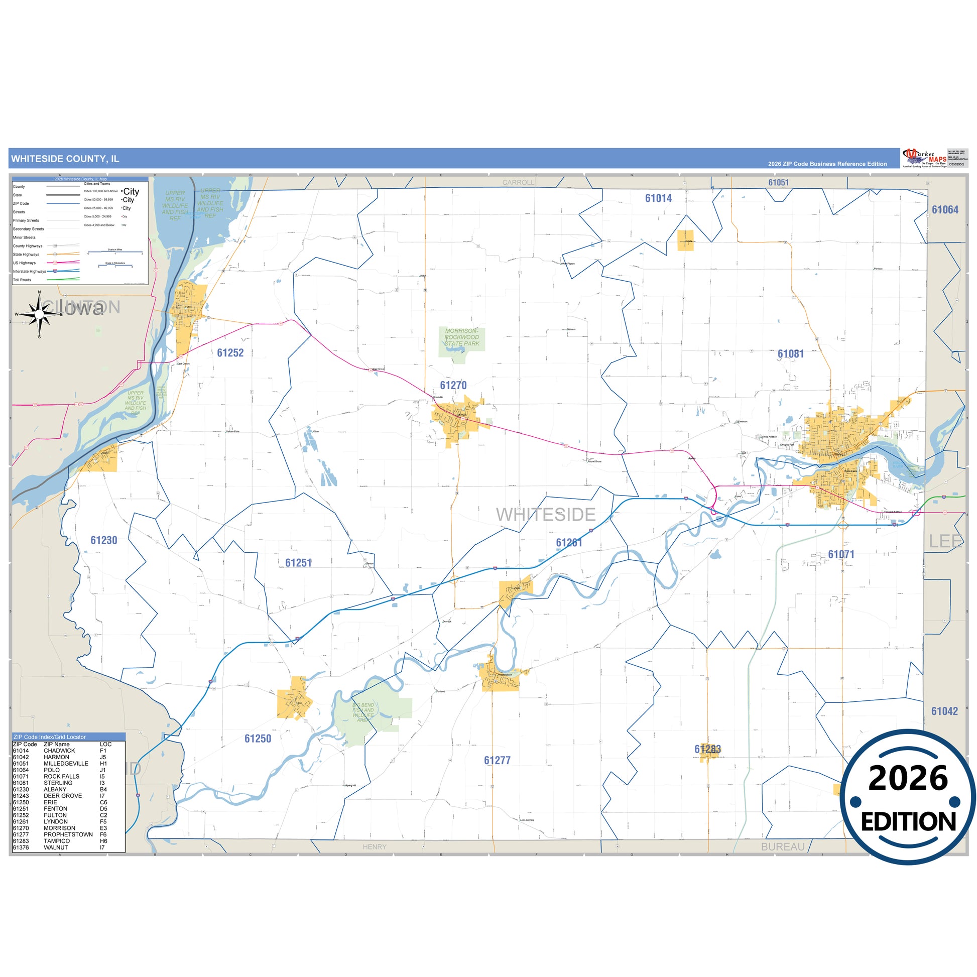The Business Reference Style Whiteside County, IL is a detailed map that includes all towns, cities, major roadways, and highways. Available in multiple wall map sizes, perfect for home, school, office, or business display.
