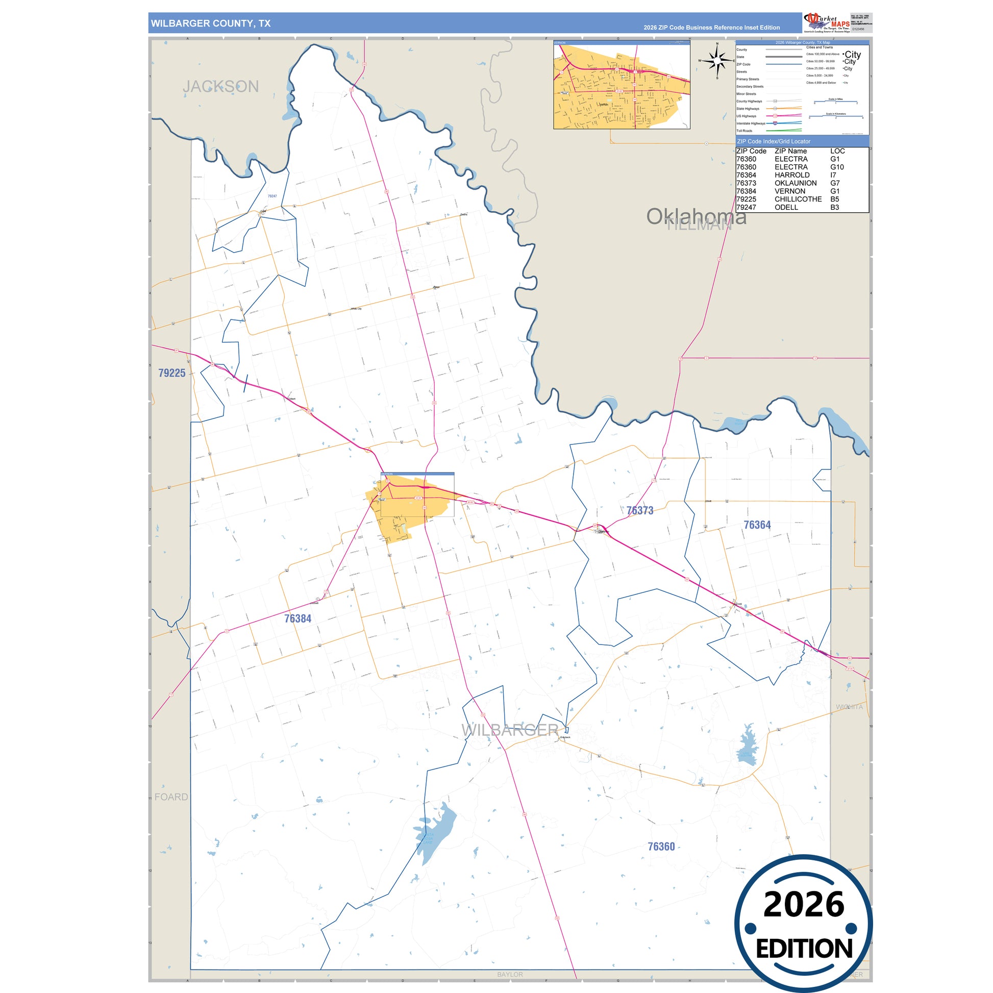 The Business Reference Style Wilbarger County, TX is a detailed map that includes all towns, cities, major roadways, and highways. Available in multiple wall map sizes, perfect for home, school, office, or business display.