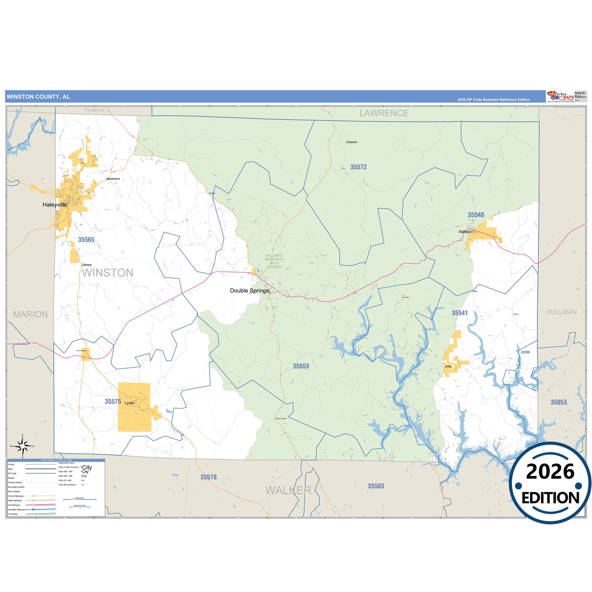 The Business Reference Style Winston County, AL is a detailed map that includes all towns, cities, major roadways, and highways. Available in multiple wall map sizes, perfect for home, school, office, or business display.